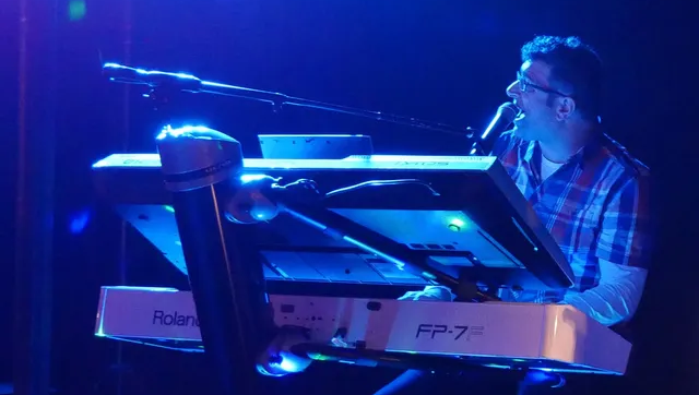 Balladen sowie bei schnelleren Hits immer wieder ein Feuerwerk an den Tasten. In Gedanken immer einen Akkord voraus, pusht er die Band mit Tempo und Energie. Ob Keyboard
